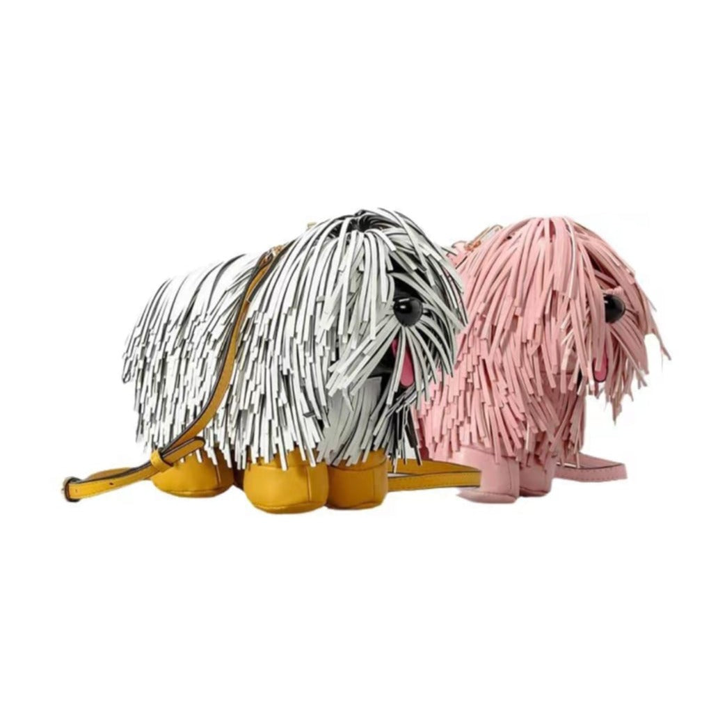 Admire the intricate details of our fringed dog-shaped crossbody bag, a true work of art. With gold-plated buckles and leather outer material, this bag showcases exquisite craftsmanship and luxury design.